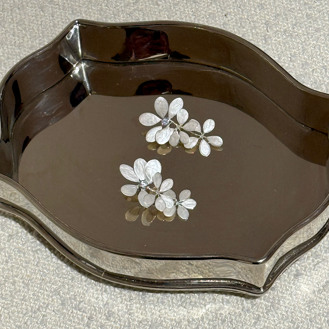 Materiales: Pendientes de plata con circonita y strass, hilo 99% cobre bañado en plata y esmalte.